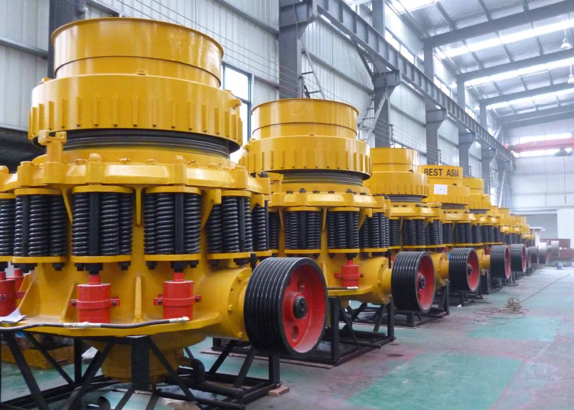 在不可破異物通過破碎腔或因某種原因機(jī)器超載時(shí),破碎機(jī)彈簧保險(xiǎn)系統(tǒng)實(shí)現(xiàn)保險(xiǎn),圓錐破碎機(jī)排礦石增大。異物從圓錐破碎機(jī)破碎腔排出,如異物卡在排礦口使用清腔系統(tǒng),使排礦繼續(xù)增大,使異物排出圓錐破碎機(jī)破碎腔。圓錐破碎機(jī)在彈簧的作用下,排礦口自動(dòng)復(fù)位,圓錐破碎機(jī)機(jī)器恢復(fù)正常工作。圓錐破碎機(jī)系列破碎機(jī)分粗碎圓錐破碎機(jī)、中碎圓錐破碎機(jī)和細(xì)碎圓錐破碎機(jī)三種,可根據(jù)用戶不同需求選購。工作原理
